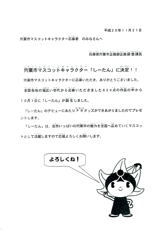 美作市の自然・風土をイメージし、市の花「カタクリ」をモチーフにしています。 美作市マスコットキャラクターのデザイン及び名称を募集したところ、全国各地より925点が集まり、その中から選ばれたキャラクターだそうです。 チョベカワー!! そして、ブープロからお送りしたワンワン・ワンダ