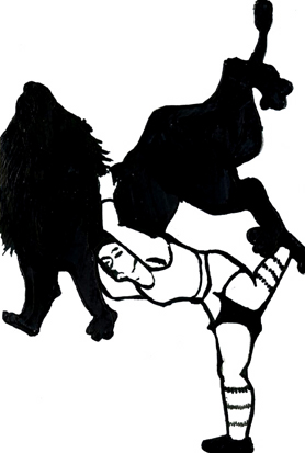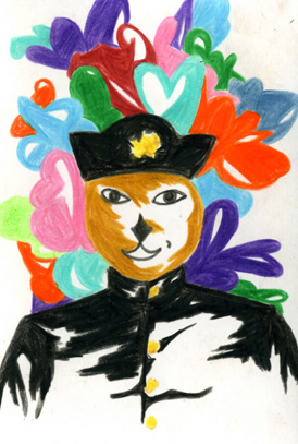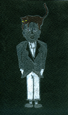 黒人ジョージ・Cの頭の上に黒猫が乗ってます